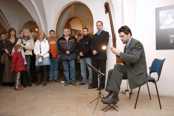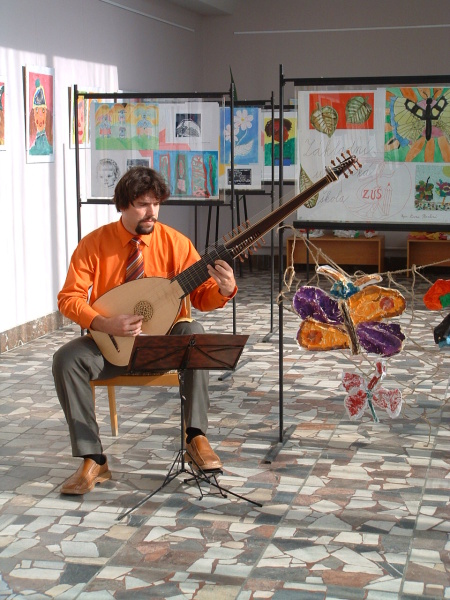 Polná, Městské muzeum, sólová loutna na vernisáži výstavy Josef Kos - grafika, kresba, malba, 04.04.2024