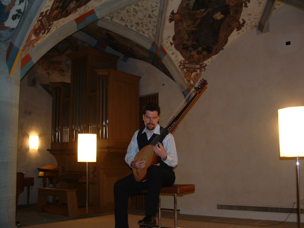 Švýcarsko, Flüeli, loutnové sólo v klášterní kapli, červenec 2011