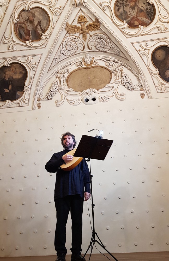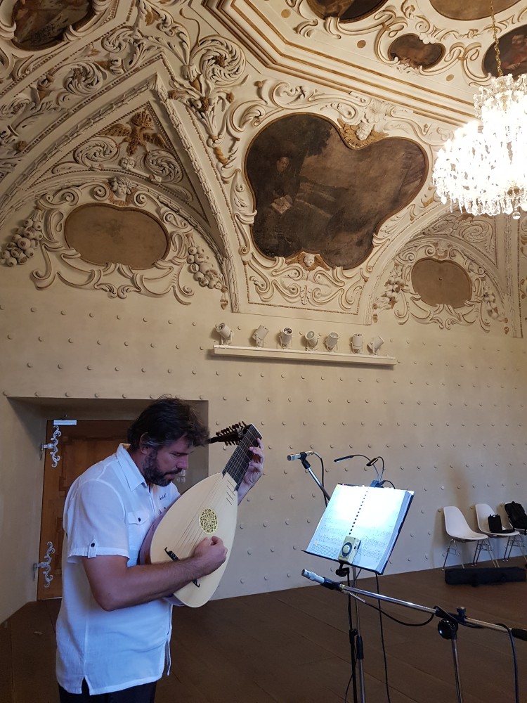 Valtice, zámek, sólová loutna ve Vinotéce u příležitosti barokního festivalu Feste Teatrale, 31.08.2019