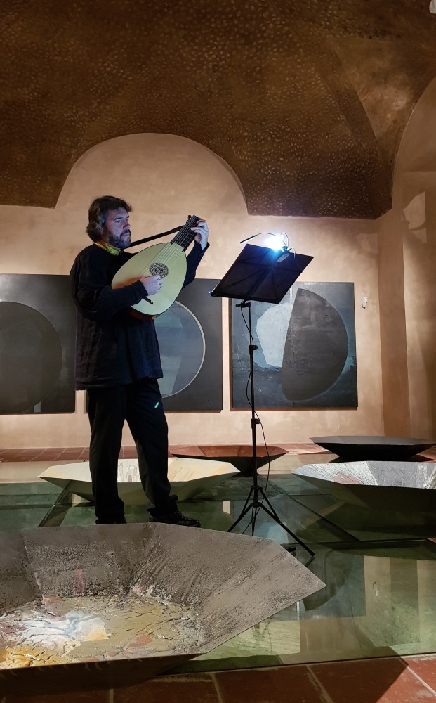 Havlíčkův Brod, Galerie výtvarného umění, sólová loutna na vernisáži výstavy - Eduard Ovčáček, 17.07.2020