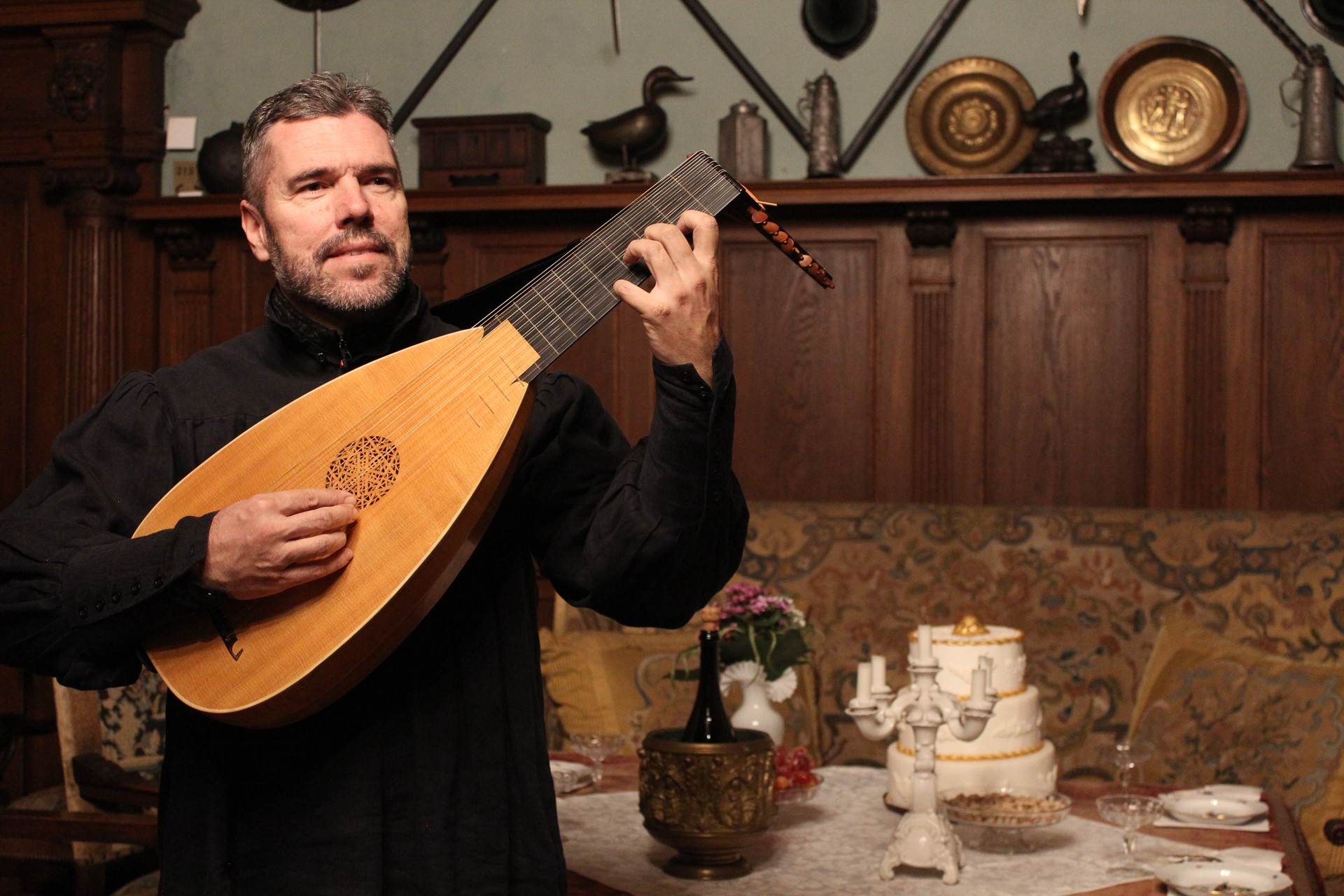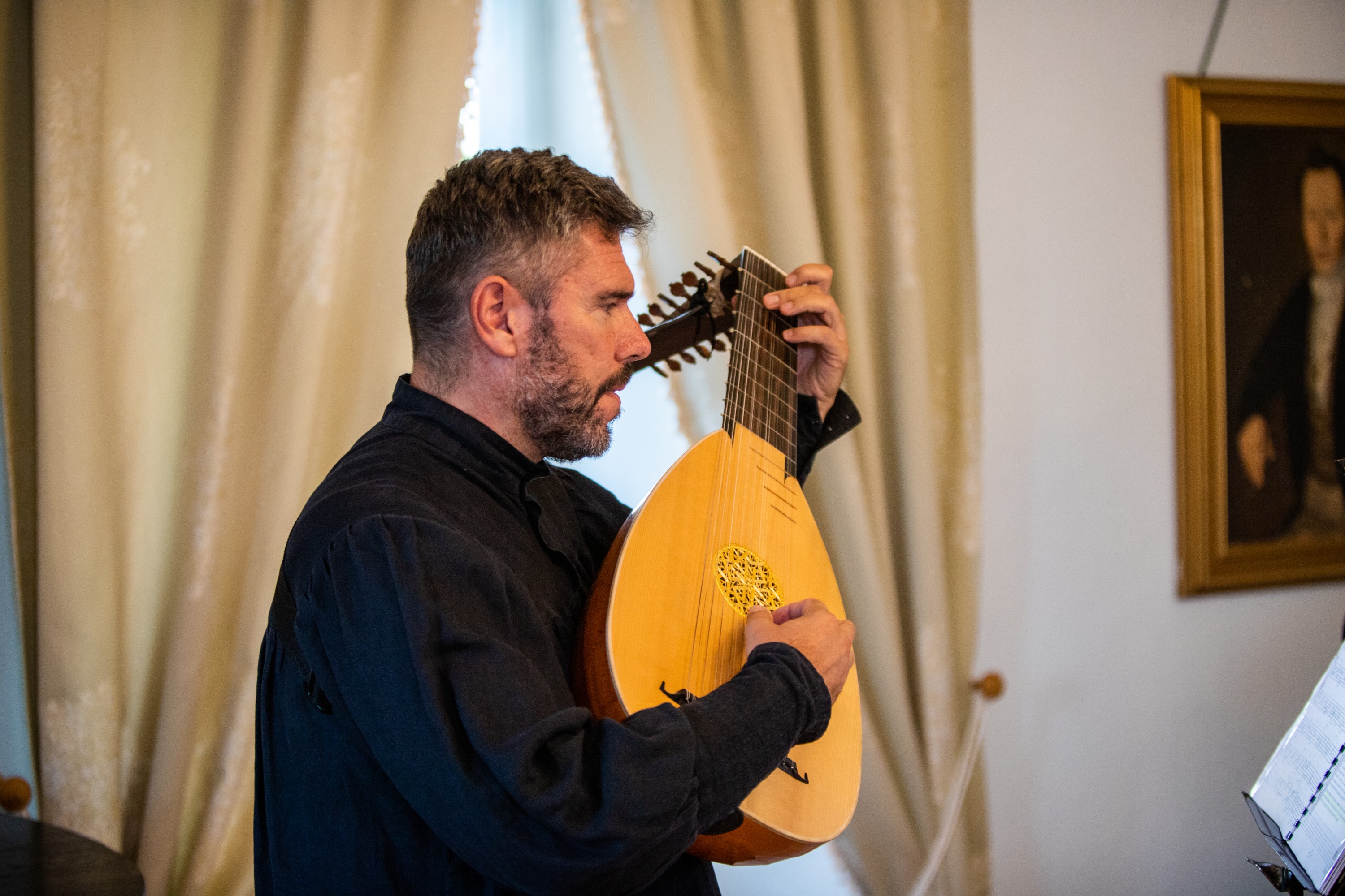 Růžkovy Lhotice, sál zámku, loutnové sólo v rámci slavnostního koncertu, 16.09.2023