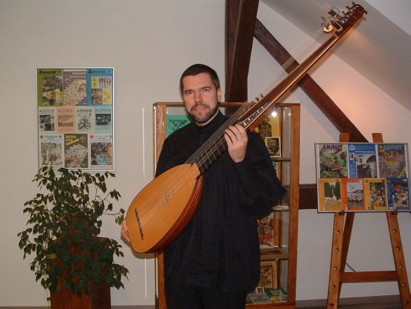 Třebíč, sólová loutna v Knihkupectví Lenky Trojanové, květen 2010