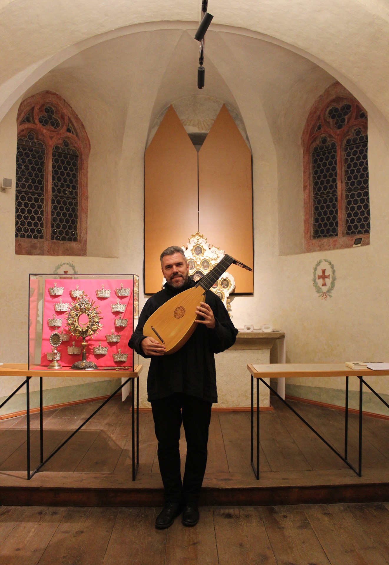 Kadaň, kaple sv. Kateřiny ve Františkánském klášteře, sólová loutna při komponovaném pásmu, 25.11.2025