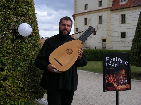 Valtice, zámek, sólová loutna na Čestném nádvoří u příležitosti barokního festivalu Feste Teatrale, 2. 9. 2017