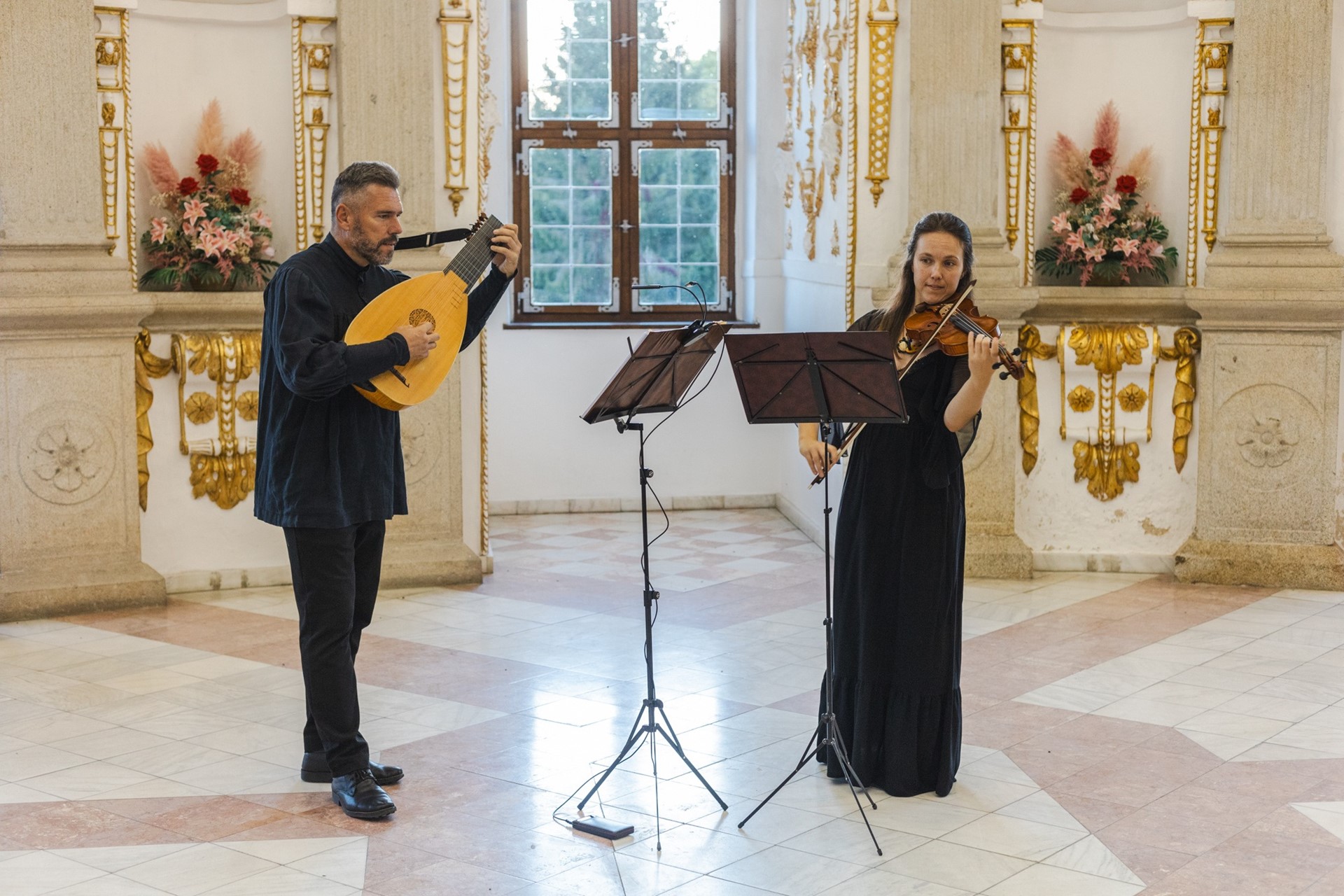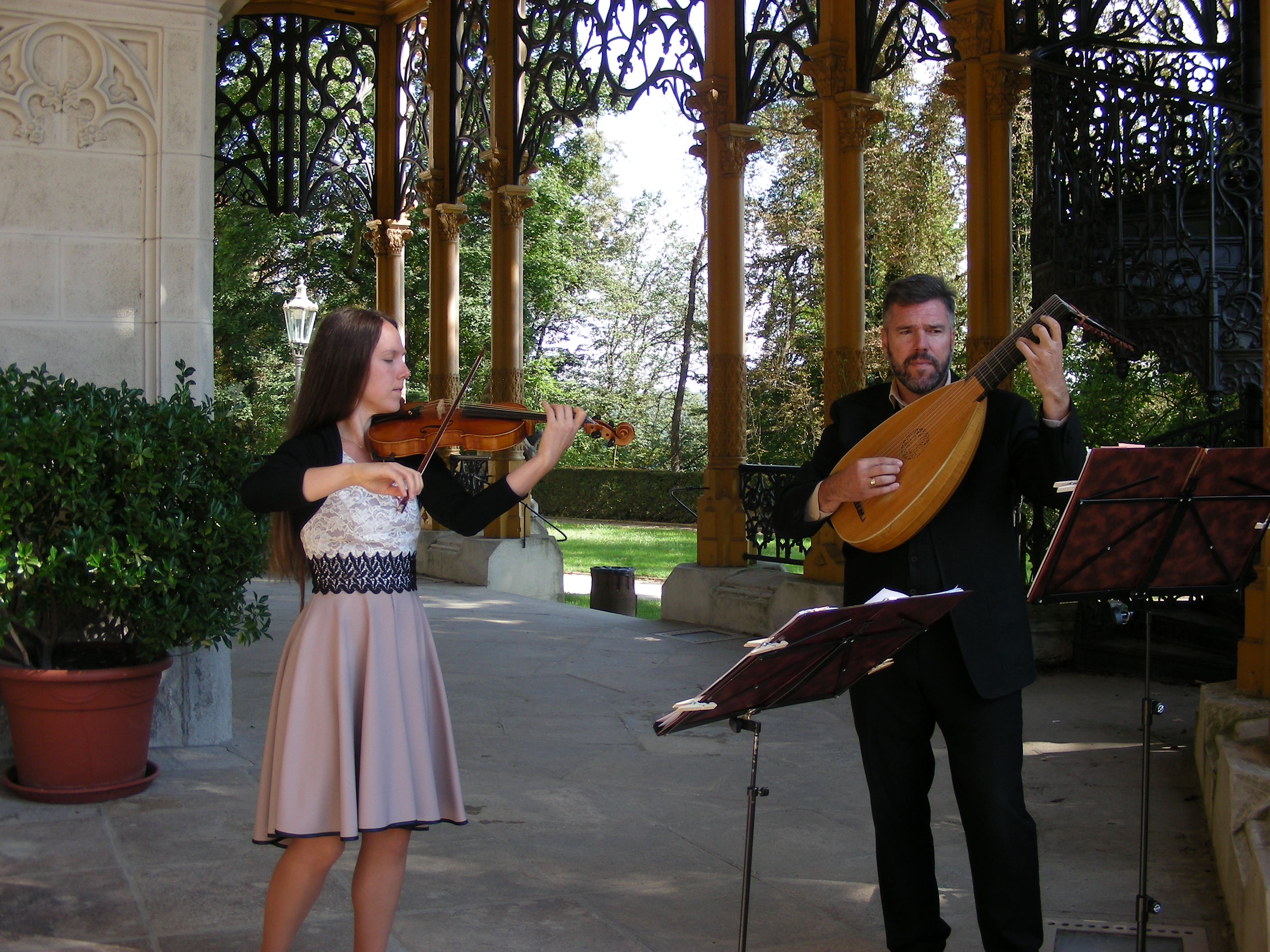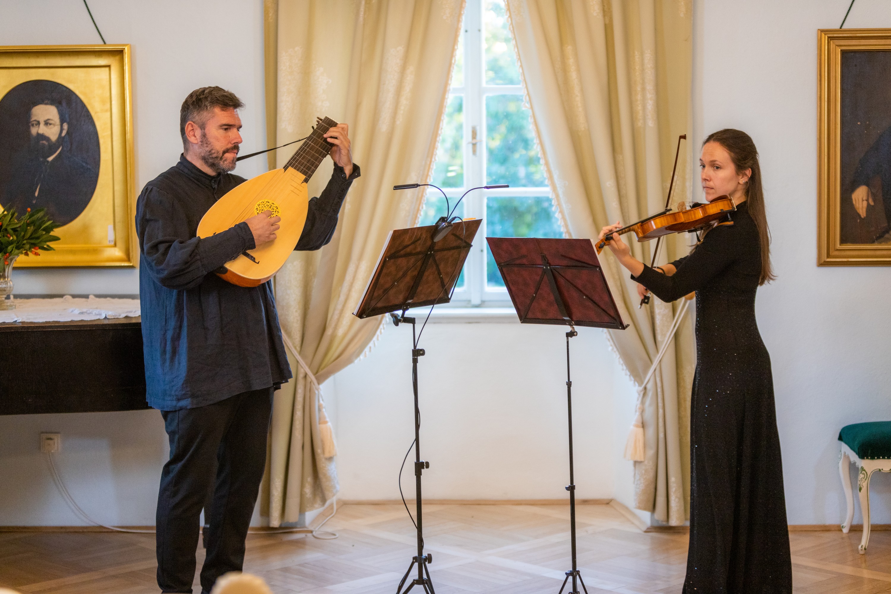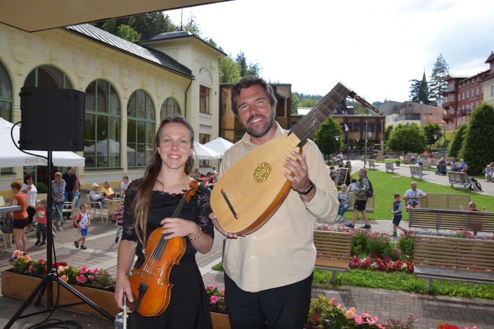 Janské Lázně, Chvění houslových strun aneb Loutna a housle se přestavují na venkovním pódiu kolonády, 22.07.2020 (foto M. Hajný)