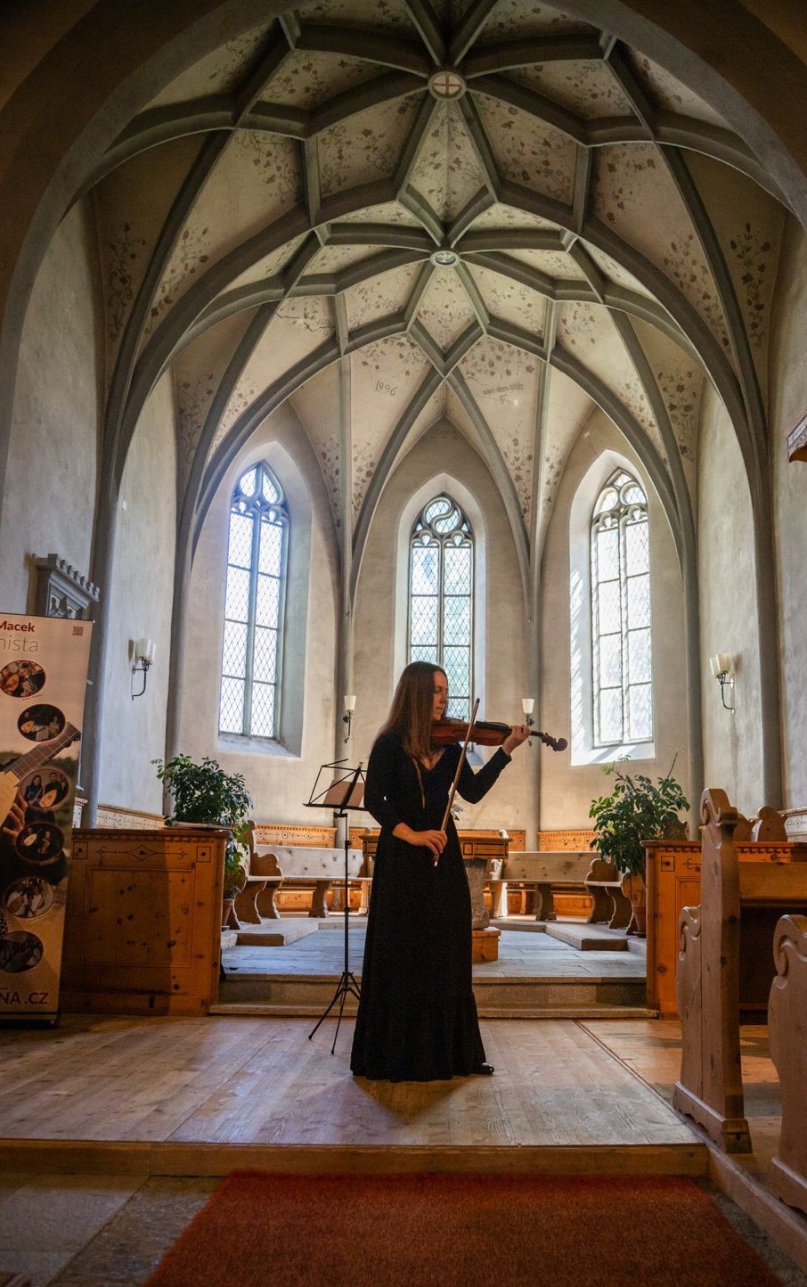 Slavonice, kaple Sv. kříže, koncertní pořad Chvění houslových strun v rámci EHD, 10.09.2021
